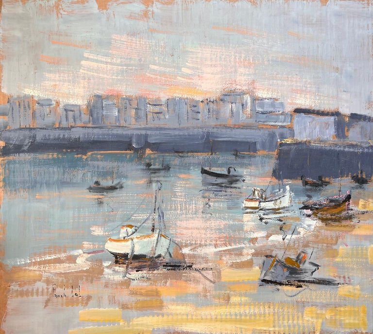 Many of Lel’s works focus on the harbours and coastlines of Brittany and beyond. Boats rock gently in the water at Saint-Servan, their masts cutting into bright skies. In paintings of the Morbihan Gulf, the sea is less a background and more a character in its own right — shifting, restless, full of light. These are paintings that carry salt air and sea spray into a room, adding movement and freshness wherever they hang.
