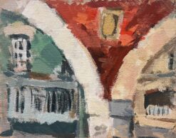 Colourful Abstract, French Expressionist Original Painting Farm Buildings