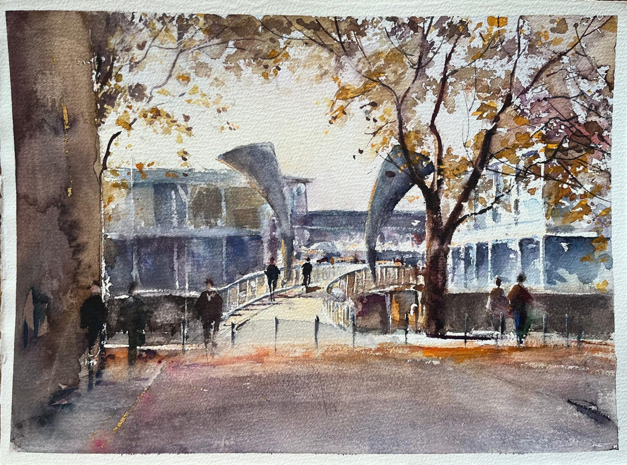 Be the first to review “British Impressionist Watercolor of a Modern Pedestrian Bridge in Autumn” Cancel reply
