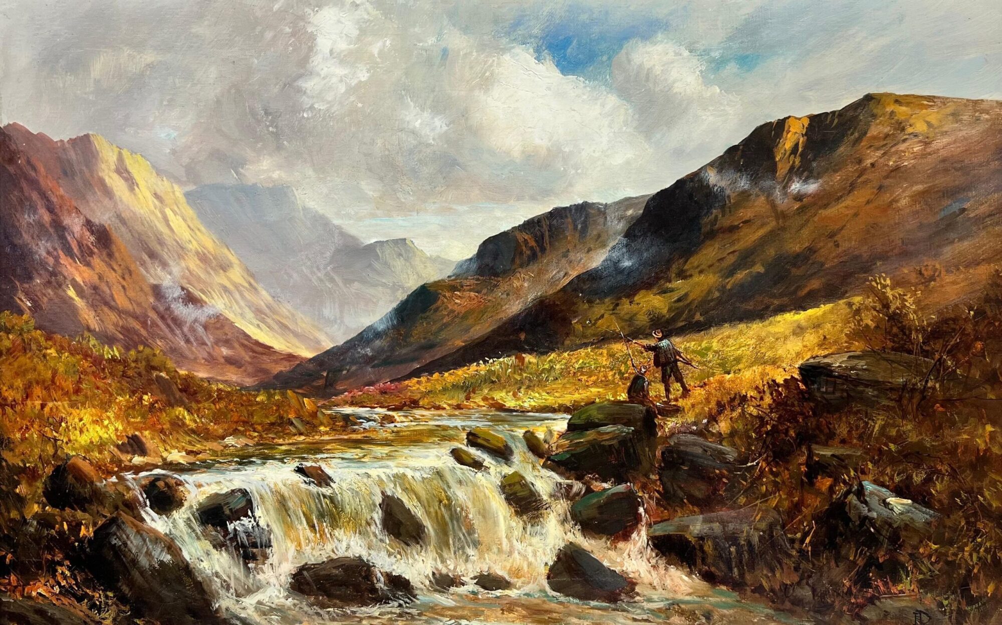 Antique British Oil Fishing in the Highlands, 1800-1899 framed oil painting