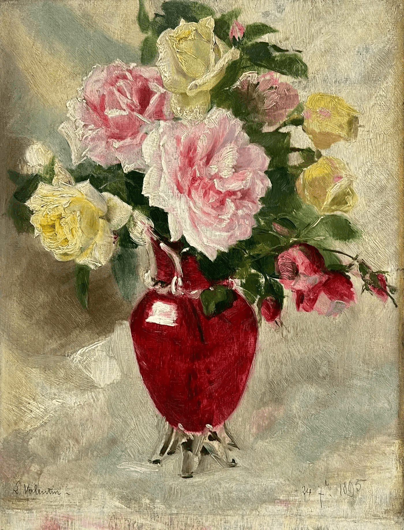 1900-1999 German Modernist Oil Painting Colorful Still Life of Flowers