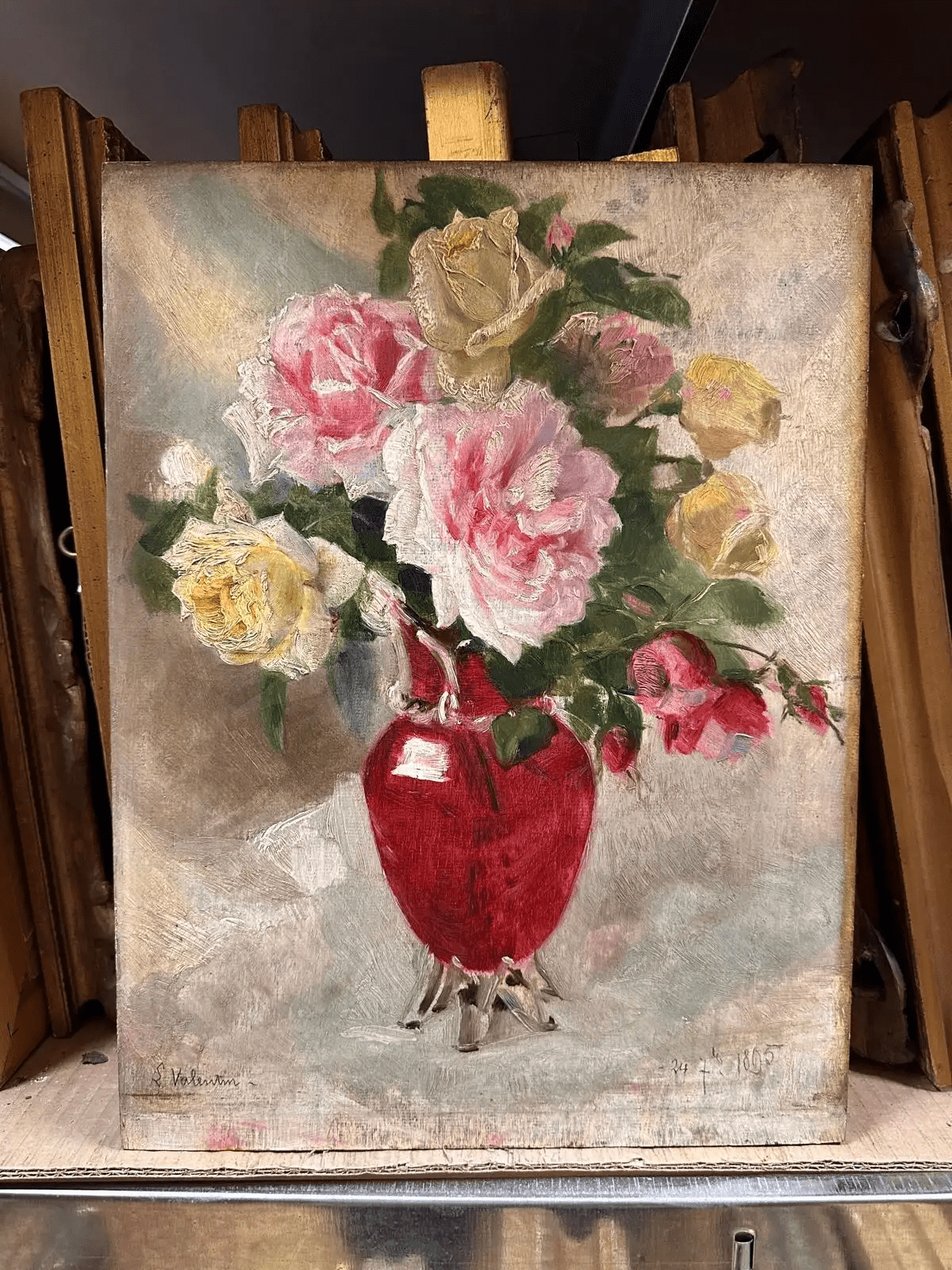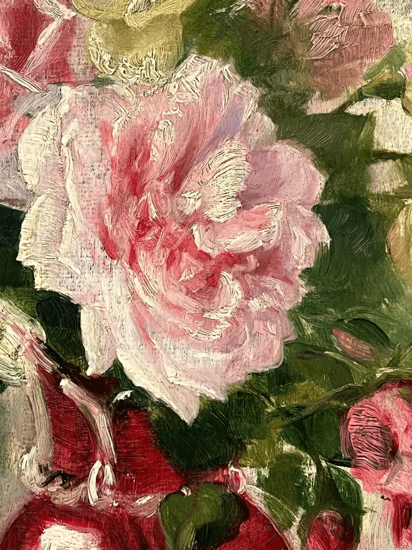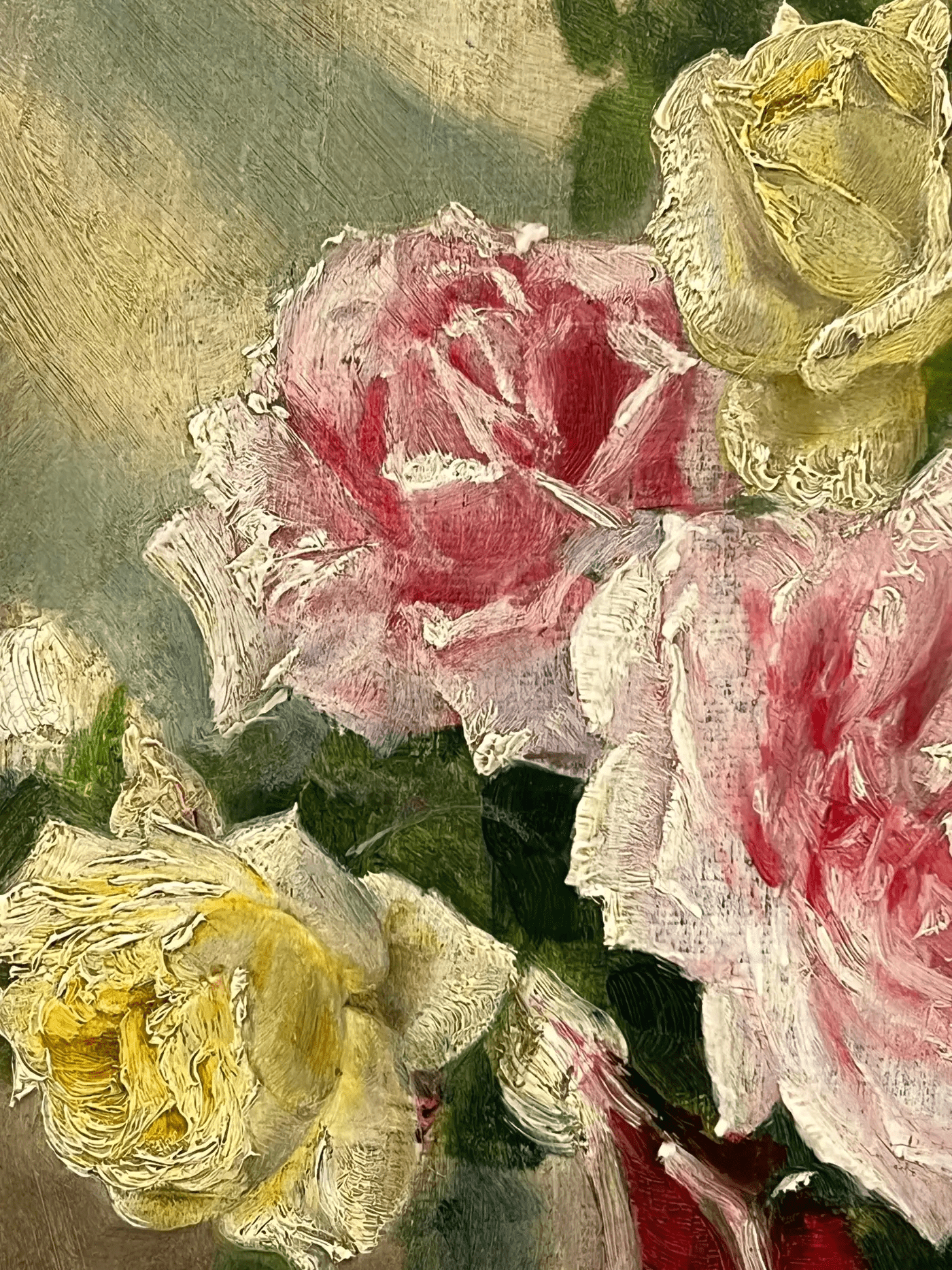 Vintage French Signed Oil Thick Impasto Paint Still Life Flowers
