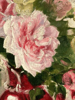 Vibrant Still Life with Potted Pink Flowers on a Garden Bench French Painting