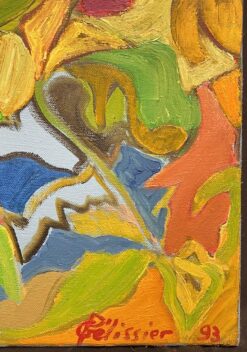 French 20th Century Vibrant Abstract Swirls of Orange Yellow Green and Blue