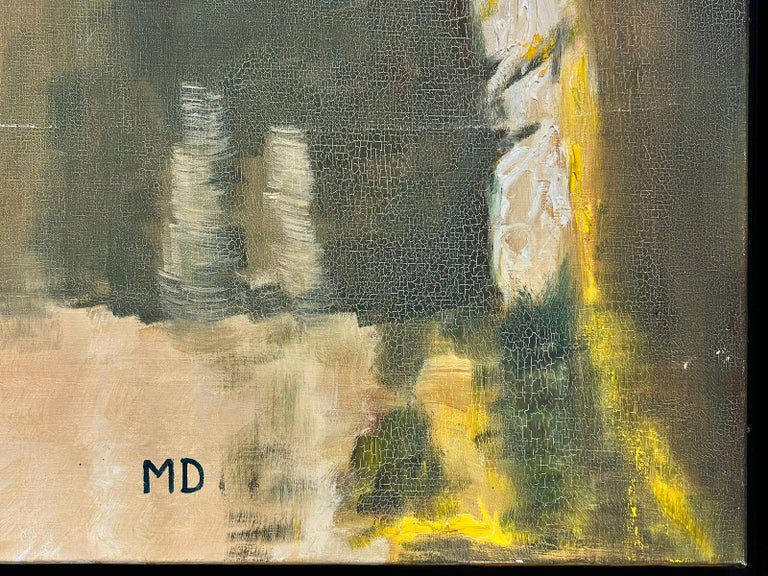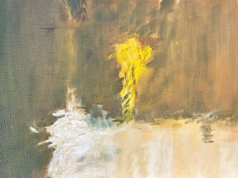 Huge French Abstract Painting Brown Beige Yellow Ochre colors, signed