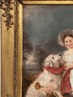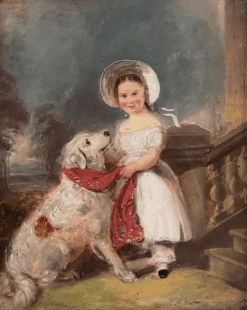 Portrait of a Young Girl, with her Pet Dog on the Steps of her Country Home