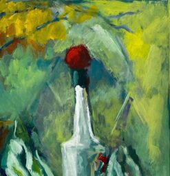 Ideal for interiors seeking a statement of colour and movement, this work sits comfortably with French modernist still lifes, post-impressionist palettes, and contemporary eclectic decor. Unframed and ready for bespoke presentation, it exemplifies Nicod’s ability to elevate humble tabletop subjects into lyrical, architectural compositions.