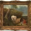 Early 1800’s English Oil Painting The Country Stable Groom Horse & Figures