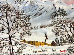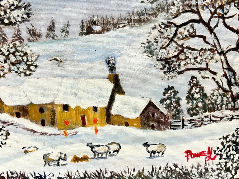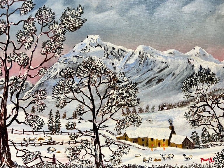 Welsh Winter Landscape Sheep in Valley Covered in Snow Original British Oil